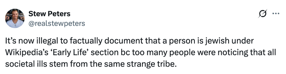 The phrase is used to point people to the “early life” section of a celebrity’s Wikipedia page. This section usually covers childhood, family background, and, when relevant, whether someone was raised Jewish or born to Jewish parents. For people who already know the coded meaning, the implication is clear: the user is suggesting that Jewish identity explains behavior they dislike.