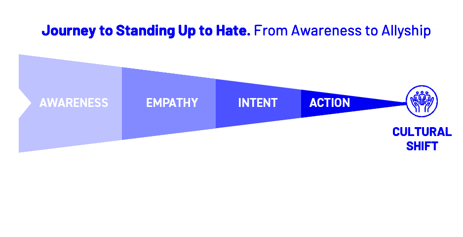 These are the central findings of the US Antisemitism Landscape Survey from the Blue Square Alliance (partnering with SSRS and Research Narrative), the largest tracking study of American attitudes related to antisemitism. In this research, we measure beliefs and actions at each point along the journey of responding to prejudice: from awareness that antisemitism exists to recognition of the issue’s importance to willingness to stand up against it.