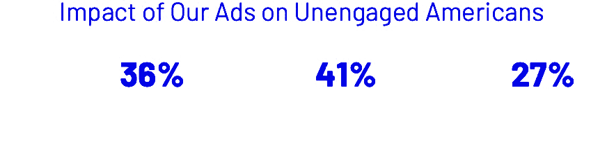 Over the last 12 months, our ads have reached the vast majority of Americans, with 2.4 billion impressions on TV and online. These messages continue to have a positive impact with Unengaged Americans.
