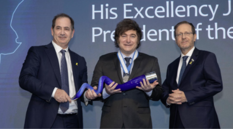 Milei said he will use the award money to form the “American Friends of the Isaac Accords” (AFOIA), an initiative that aims to improve diplomatic, economic, and cultural cooperation between Israel and Latin American countries. The accords plan to team up with successful nonprofits in Latin America to work with “sideline nations” such as Uruguay, Panama, and Costa Rica to foster stronger relationships with Israel. “I trust this gesture may inspire deeper dialogue and cooperation… based on shared values such as freedom, democracy, and mutual respect.”